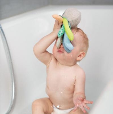 • datorita unei mingi incorporate, micuta caracatita inoata fericita pe suprafata apei ce asigura distractie atunci cand copilul face baie