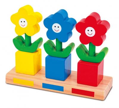 • contine o baza din lemn cu 3 ghivece si piese pentru floricele