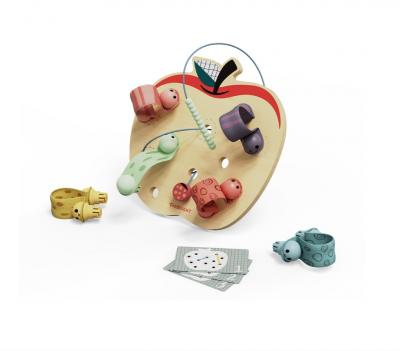 • pentru a indruma jocul si a oferi copiilor provocari variate, sunt incluse carduri cu sarcini care indica modul in care trebuie sa fie introdus sau fixat fiecare viermisor in mar