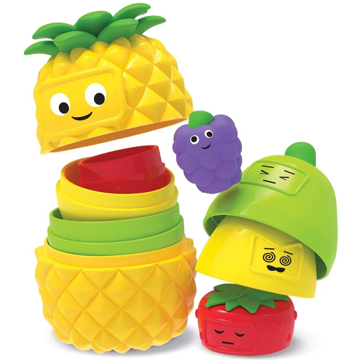 • fiecare dintre aceste 5 fructe colorate (ananas, para, lamaie, capsuna si strugure) care se potrivesc unul in altul au doua expresii in contrast, ce ii ajuta pe copii sa-si dezvolte abilitatile de invatare socio-emotionale
