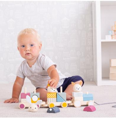 • copiii pot incarca vagoanele cu caramizi, potrivind cuburile dupa forma si culoare, iar dupa finalizarea constructiei, trenuletul poate fi tras cu usurinta