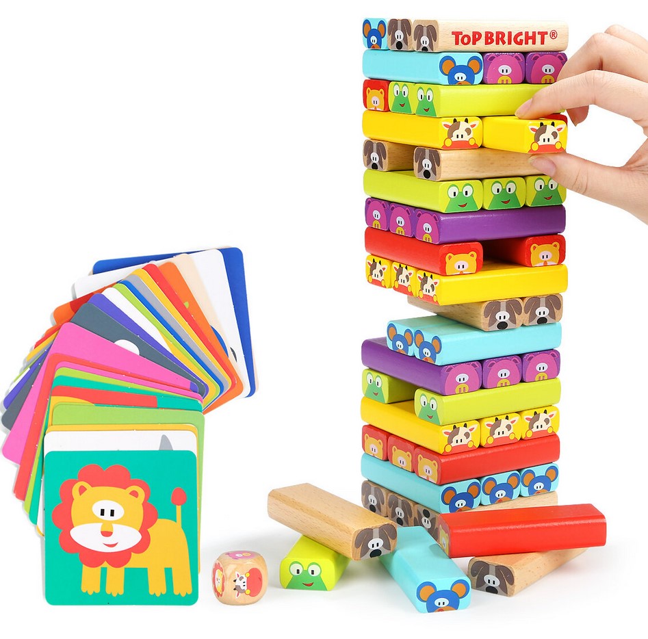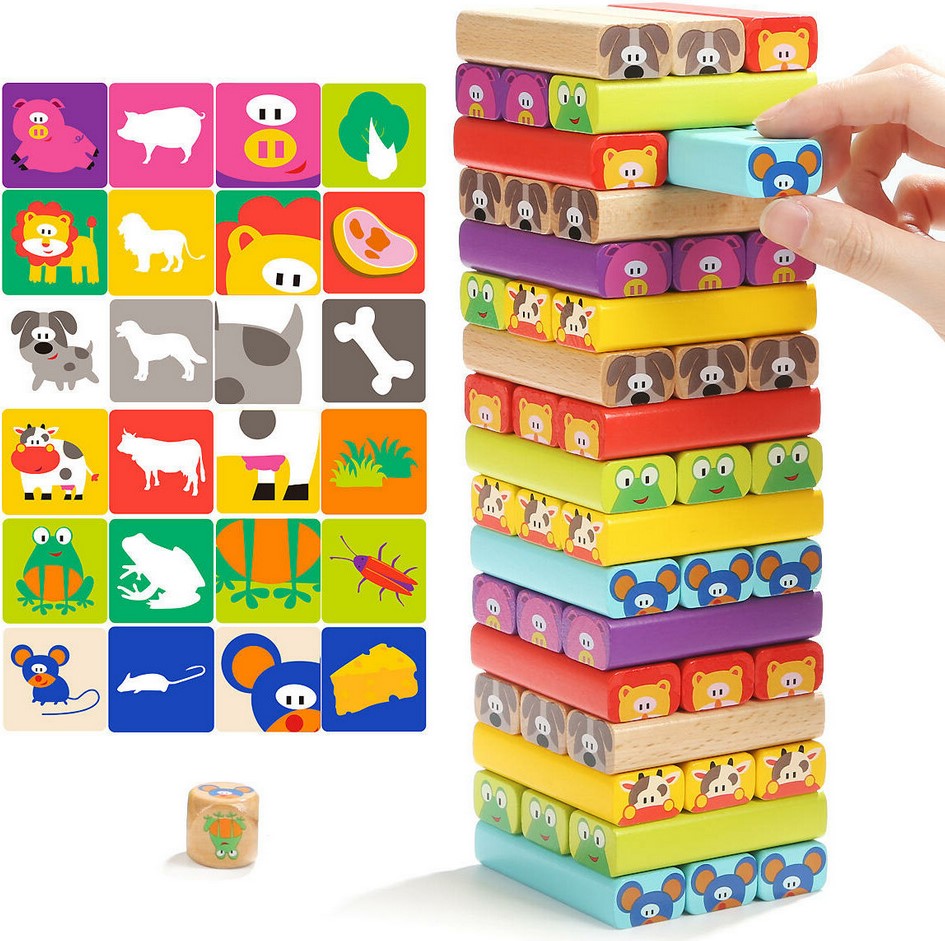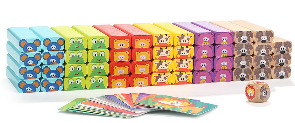 Regulament: Construieste turnuletul cu cate trei piese pe etaj. Da cu zarul si vezi ce piesa trebuie sa extragi. Scoate cu atentie piesa pe care o vei aseza deasupra turnuletului, avand mare grija sa nu darami constructia. Jocul se incheie cand turnuletul se darama. A doua varianta de joc presupune sa extragi piesa indicata de cartonas. Cele 24 de carduri cu animalute sunt imprastiate cu fata in jos pe o suprafata dreapta. Nu uita, cardurile trebuie sa fie bine amestecate. Alege un card, vizulizeaza animalutul de pe card si extrage piesa corespunzatoare pe care o vei aseza deasupra turnuletului, avand mare grija sa nu darami constructia. Jocul se incheie cand turnuletul se darama.