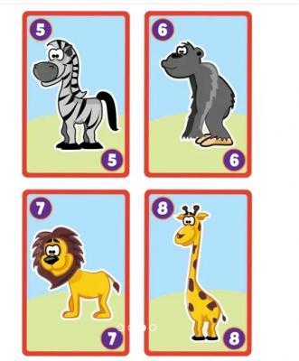 • Cele 55 de carti ilustreaza 11 animale, fiecare avand cifre de la 1 la 10