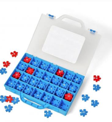 • Setul contine 156 de piese colorate, cu consoanele in albastru si vocalele in rosu, organizate in 6 seturi complete ale alfabetului in limba engleza