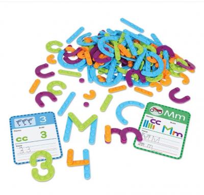 • folosind cele 160 de piese copiii au posibilitatea sa exploreze, sa construiasca cuvinte, sa recunoasca literele majuscule si literele mici, cifrele de la 0 la 10