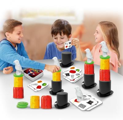• jucatorii se intrec apoi in a-si aranja piesele respectand aceleasi 3 reguli: obiectele imprimate color pe cartea de joc trebuie sa fie vizibile in stiva. Obiectele imprimate cu gri pe cartea de joc trebuie ascunse undeva IN INTERIORUL stivei. Obiectele care nu sunt ilustrate trebuie puse deoparte (si nu pot fi incluse in stiva)