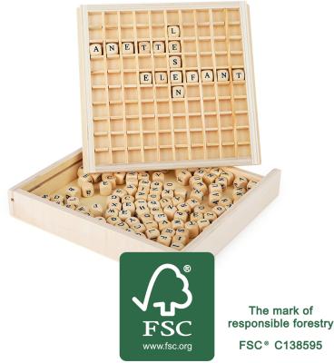 Setul contine 2 placi din lemn si 145 de cuburi cu diverse litere.