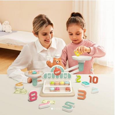 numararea: copiii trebuie sa numere prajiturile, pe o parte a balantei se pun briosele si pe cealalta trebuie sa puna numerele astfel incat balanta sa stea in echilibru