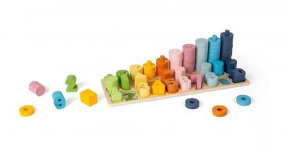 • colorata in 10 nuante atragatoare, aceasta numaratoare vine cu 78 piese si o tabla de lemn