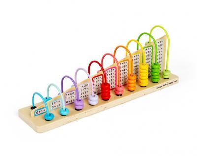 • viu colorat in 10 nuante atragatoare, acest abac matematic vine cu 55 de margele si o tabla de lemn cu ecuatii de adunare si scadere