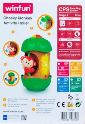 Rola de activitate cu prietenul de maimuta obraznic. Rulati rola,apasati maimuta pentru sunete distractive, melodii si lumina intermitenta.