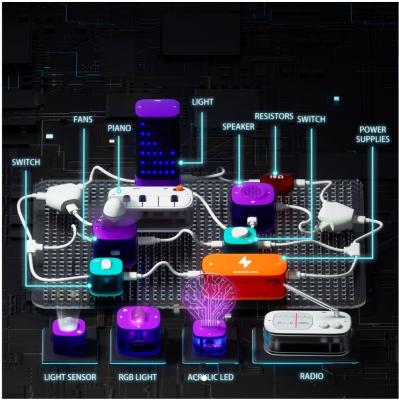 • LED-urile se aprind in ritmul vocii sau al muzicii, permitand copiii sa vada reactia circuitelor in timp real