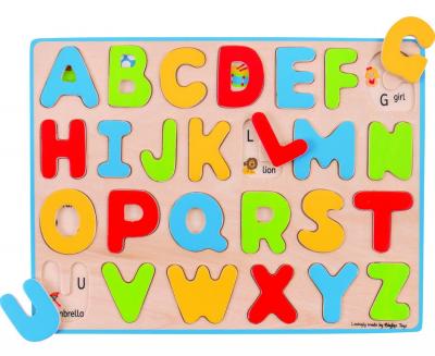 Acesta nu este doar un puzzle clasic, ci si un joc lingvistic. Odata ce manutele curioase ale copiilor au ridicat piesele, pot fi descoperite imagini cu obiecte, a caror denumire incepe cu sunetul asociat literei de pe fata piesei.