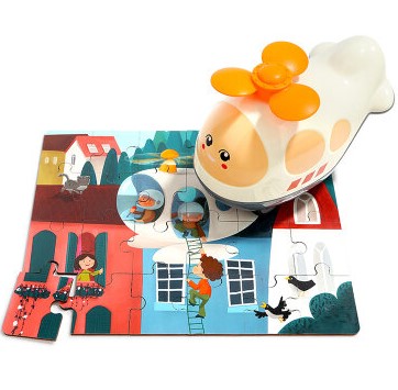 • puzzle-ul este confectionat din lemn bine finisat si vopsit cu vopsea non-toxica, iar elicopterul din plastic de inalta calitate