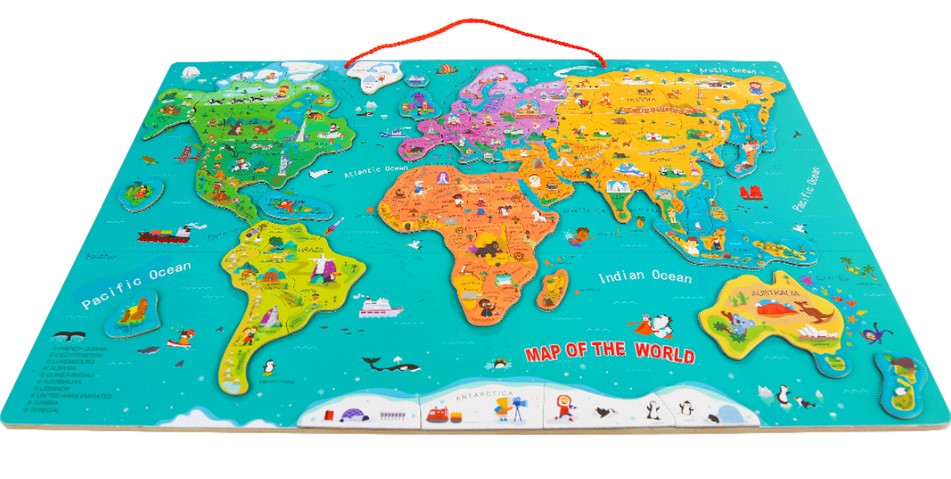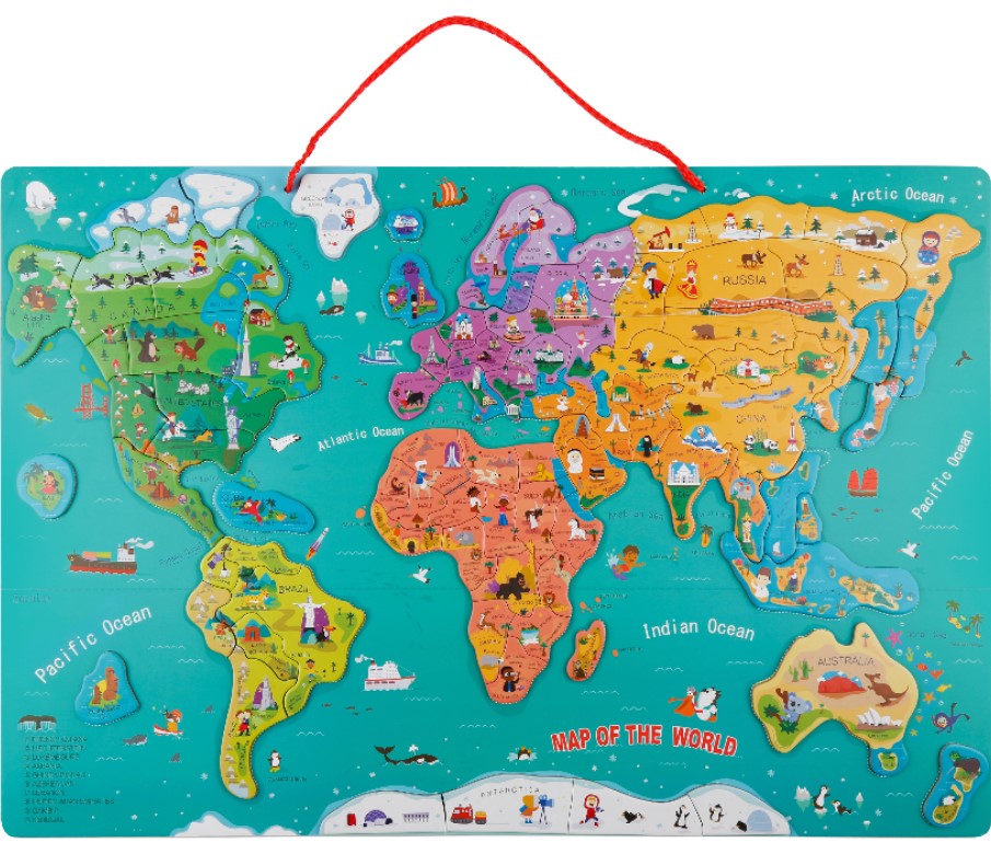 • aranjeaza corect cele 88 de piese magnetice si vei descoperi harta lumii