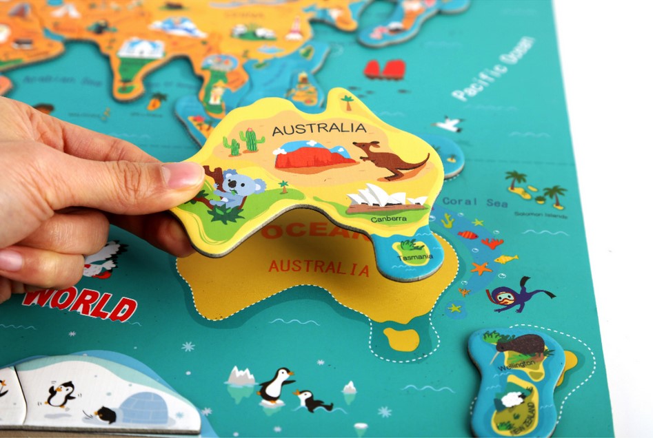 • sub fiecare piese se afla forma conturata a tarii si denumirea, astfel asocierea fiind mai usor de realizat