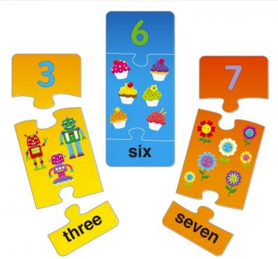 • fiecare puzzle prezinta un numar scris mare si numarul scris in litere, plus diferite elemente interesante pentru numarat