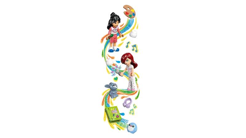 - 2 personaje LEGO® Friends – Acest set include minipapusile Paisley si Liann, o figurina iepuras de companie si o piesa LEGO speciala sub forma de jucarie de plus, plus o multime de accesorii creative pentru distractie pe roluri