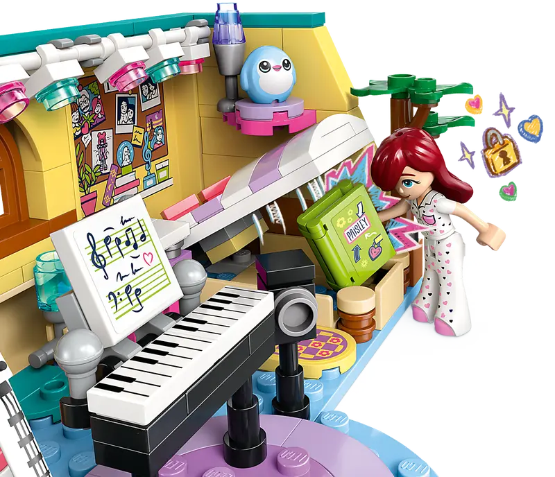 Acest set dezvolta si abilitatile sociale si emotionale ale copiilor. Micutii pot folosi accesoriile de hranire si hidratare pentru a ajuta la ingrijirea iepurasului de companie Melody, pentru ca apoi sa descopere compartimentul secret al patului unde Paisley isi tine jurnalul. Cauta si alte seturi atractive (vandute separat) in universul LEGO Friends, care contin multe alte povesti si personaje ce asteapta sa fie descoperite.