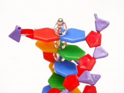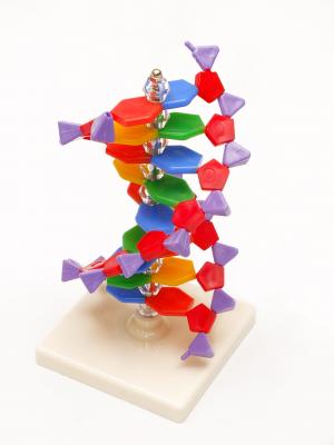 Modelul reproduce structura moleculara a ADN-ului (compusa din 4 tipuri de nucleotide: adenina, timina, citozina si guanina), ce se prezinta sub forma unei spirale formata din 2 catene polinucleotidice rasucite helicoidal in jurul unui ax comun. Pentru a fi identificate, nucleotidele au culori diferite.