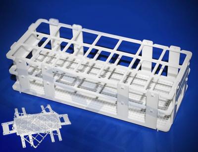 - Suport pentru eprubete, realizat din polipropilena modificata, care permite suporturilor sa fie utilizate in bai de apa, fara a pluti