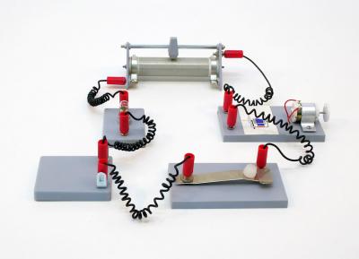 Acest material didactic se foloseste pentru identificarea si invatarea componentelor de baza ale unui circuit electric simplu, care are mai multi receptori. in acest caz receptorii sunt un bec si un electromotor.