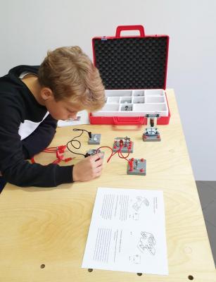 Acest set este destinat familiarizarii elevilor cu elementele de baza ale circuitelor electrice si cu  legarea acestora conform unei schemei electrice date.