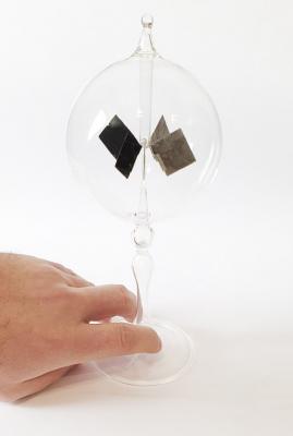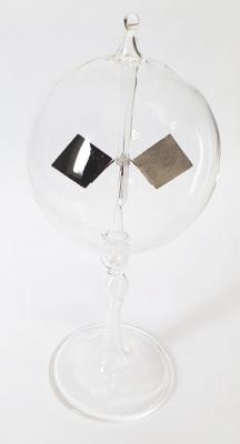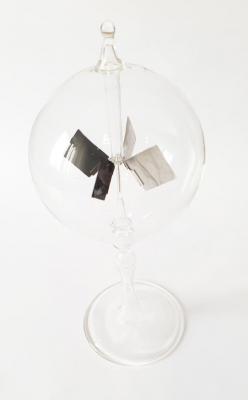 Este format dintr-o morisca foarte usoara, care are frecari in lagare foarte mici, plasata intr-un balon de sticla vidat partial. Paletele sunt pe o fata negre, iar pe cealalta albe sau lustruite. Dispozitivul, expus la o radiatie luminoasa sau infrarosie incepe sa se invarta. Explicatia este ca paletele indreptate cu partea neagra spre sursa radianta se incalzesc mai mult de la radiatie, cedeaza caldura moleculelor de gaz care mai sunt in balon si asupra lor apare o reactiune mai mare decat asupra paletelor opuse, ca urmare morisca se misca. Din punct de vedere termodinamic este un motor cu doua surse de caldura, paletele negre si mediul ambiant. Acest radiometru a fost construit de William Crookes in 1873.