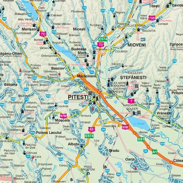Descriere - Harta judetului Arges. Dimensiune 140x200cm, cu sipci din lemn