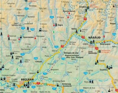 Descriere - Harta judetului Bistrita-Nasaud cu primarii. Dimensiune 122x88cm