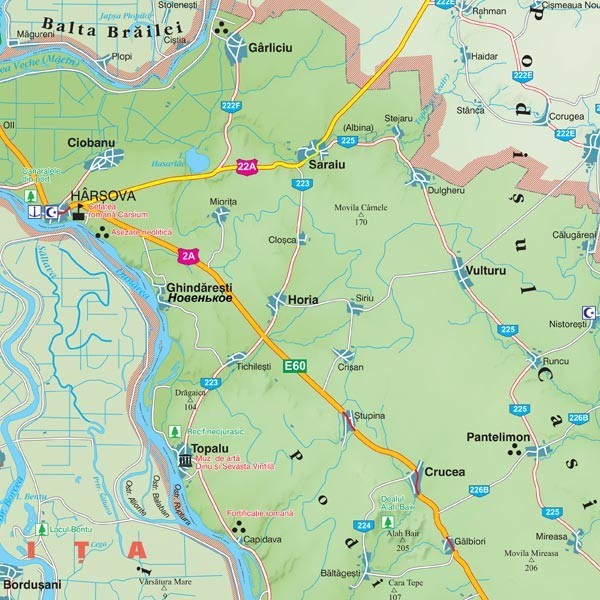 Harta judetului Constanta este laminata cu folie subtire de protectie si dotata cu sipci de metal. Folia de protectie confera hartii o rezistenta in timp. Din acest motiv harta nu se rupe. Harta se poate scrie cu marker pe baza de apa, ulterior putand fi stearsa cu un servetel umed.