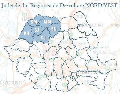 Harta Regiunii de Nord-Vest a Romaniei este o harta rutiera care cuprinde informatii la nivel de comune, sate. Regiunea Nord-vest cuprinde urmatoarele judete: Bihor, Satu-Mare, Maramures, Salaj, Cluj,Bistrita-Nasaud. Harta prezentata vine in ajutorul tuturor celor ce au nevoie de informatii complexe la nivel rutier pe partea de Nord-Vest a tarii.