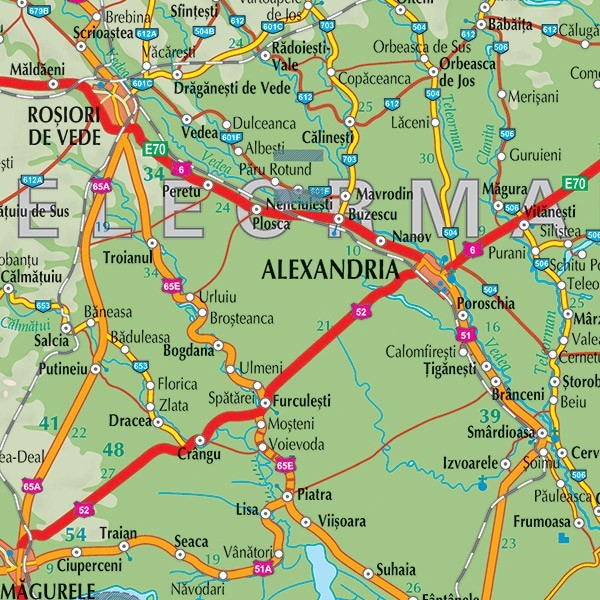 Harta Regiunii de Sud a Romaniei este o harta rutiera care cuprinde informatii la nivel de comune, sate. Regiunea de Sud cuprinde urmatoarele judete: Arges, Dambovita, Prahova, Teleorman, Giurgiu, Calarasi si Ialomita.