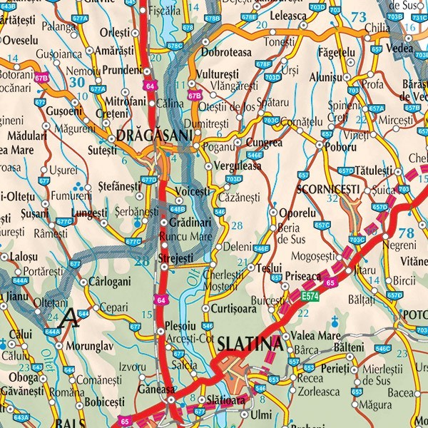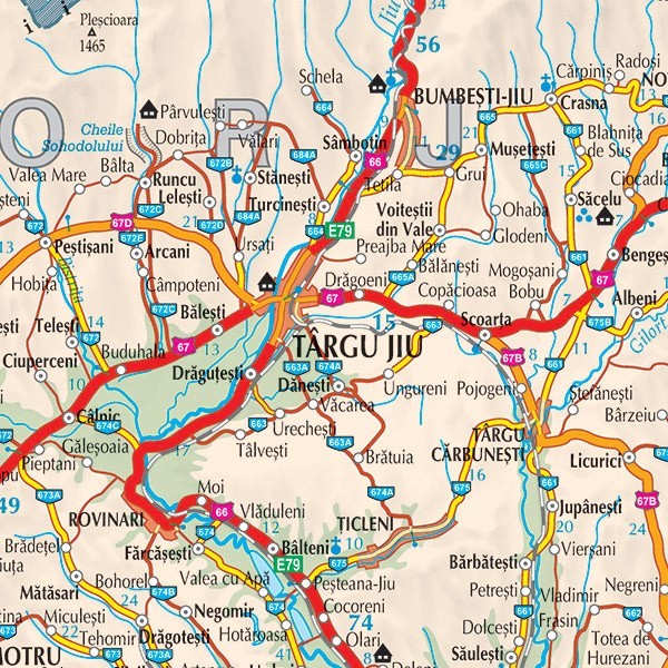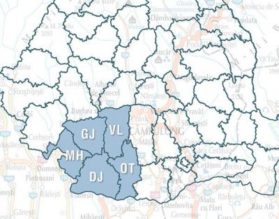 Harta Regiunii de Sud-Vest a Romaniei este o harta rutiera care cuprinde informatii la nivel de comune, sate. Regiunea Sud-Vest cuprinde urmatoarele judete: Mehedinti, Gorj, Dolj, Valcea si Olt.