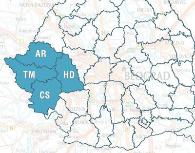 Harta Regiunii de Vest a Romaniei este o harta rutiera care cuprinde informatii la nivel de comune, sate. Regiunea de Vest cuprinde urmatoarele judete: Arad, Timis, Hunedoara si Caras-Severin.