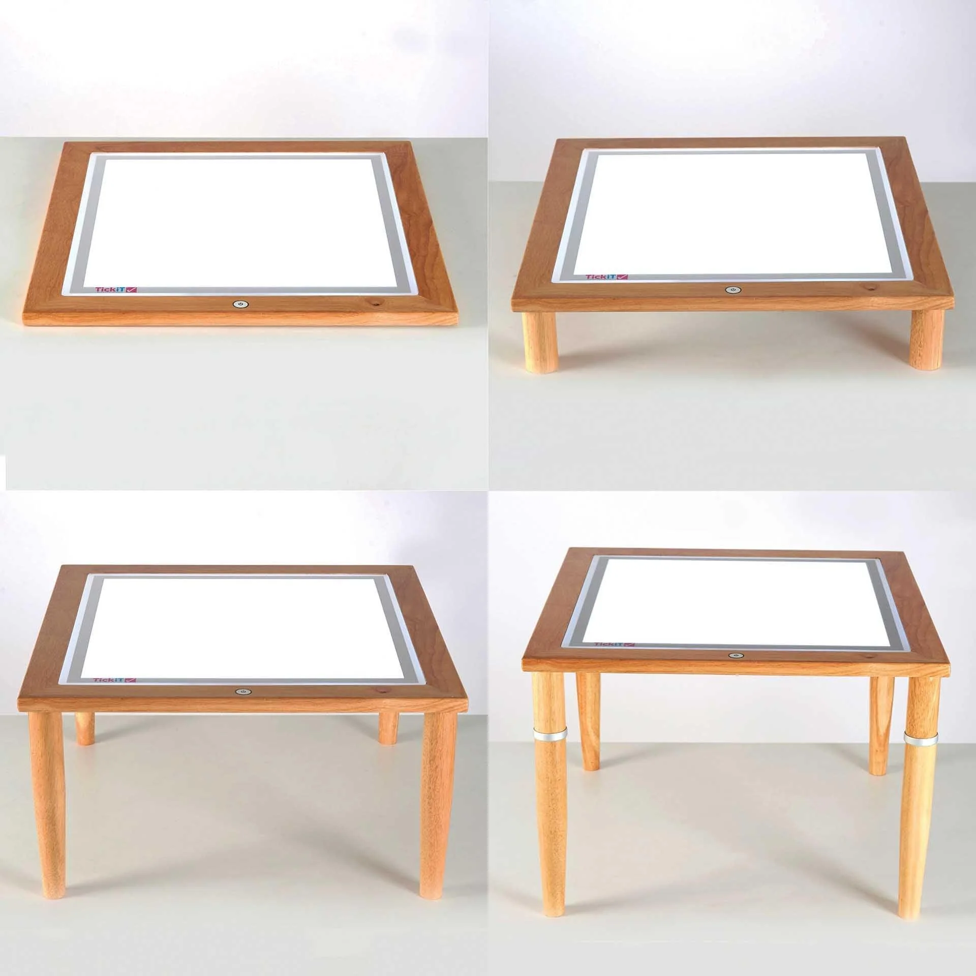 - Toate beneficiile panourilor luminoase TickiT sunt acum oferite intr-o masa din lemn solida si robusta, reglabila in inaltime, permitand panoului sa fie utilizat de catre copii de diferite grupe de varsta sau dand copilului posibilitatea de a sta asezat sau in picioare in timp ce desfasoara activitati interesante.