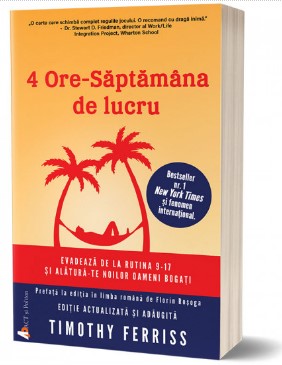 Aceasta carte s-a aflat timp de sapte ani pe lista bestsellerurilor New York Times, iar motivul pentru care s-a intamplat acest lucru nu este greu de ghicit. Ferriss a intuit in aceasta carte ce gol imens este in sufletele „gulerelor albe” care isi petrec nenumarate ore inchise in birouri anoste, simtindu-se profund neimplinite. Insa tot el a venit cu o solutie simpla, perfect adaptata secolului 21, pentru toti cei care se simt nefericiti muncind standard de la 9 la 17.