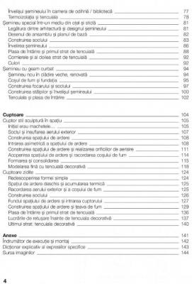Prefata Seminee deschise cu constructie traditionala Cadou de nunta pentru tinerii casatoriti Vedere din fata, plan de baza si desene de detaliu Instructiunile de construire ale producatorului si executia Construirea soclului si a spatiului de ardere Soclul Spatiul de ardere Construirea peretilor spatiului de ardere Realizarea fatadei semineului Realizarea camerei de fum si a racordului cosului de fum Aspectul exterior si invelisul semineului Semineu de colt in casa de la tara Cosul de fum si soclul semineului Construirea soclului semineului Construirea spatiului de ardere al semineului Realizarea formei definitive a semineului Semineu in stil englezesc intr-o casa veche Desenele si realitatea Fundatia si placa de baza Construirea spatiului de ardere cu model os de peste Hota de fum, grila de ventilatie, manta de semineu Realizarea fatadei stilizate a semineului Seminee moderne Doi intr-unul Un semineu pentru doua incaperi? Schitele care fac mai usoara decizia Pregatirea spatiului pentru semineul cu focar transparent Spargerea zidului si focarul semineului Zidirea mantalei semineului Tencuirea mantalei semineului Montarea fatadei de marmura Placi de pardoseala din marmura si postament Asezarea stalpilor si a cadrului Asezarea politei si a placii de polita Invelisul semineului in camera de zi Tencuiala si termoizolatie Semineu special intr-un mediu alcatuit din otel si sticla Legatura dintre arhitectura si proiectul aspectual al semineului Desene de ansamblu si plan de baza Construirea soclului Invelirea semineului Plasa de intarire si primul strat de tencuiala Corniere si al doilea strat de tencuiala Culori Semineu cu geam curbat Semineu nou in cladire veche, renovata Cosul de fum si fundatia Construirea focarului si soclului semineului Construirea stalpilor si invelisul semineului Tencuiala si plasa de intarire Cuptoare Cuptorul stil sculptura in spatiu Initial erau machetele... Soclul si insuflarea aerului exterior Construirea spatiului de ardere Lacasul spatiului de ardere Usa asimetrica a spatiului de ardere Construirea spatiului de ardere si realizarea orificiilor de aerisire Acoperirea spatiului de ardere si racordarea cosului de fum Formarea si consolidarea Modelarea fina cu tencuiala decorativa Cuptoare zidite Forma simpla redescoperita Spatiu de ardere deschis si acumulare termica Racordarea aerului exterior si a cosului de fum Construirea soclului Fundul spatiului de ardere si intrarea cuptorului Construirea spatiului de ardere si teava de fum Plasa de intarire si primul strat de tencuiala Lucrarile de retusare inainte de tencuiala decorativa Ultimul strat: tencuiala decorativa Anexa Experienta in constructia semineelor in Ungaria Cosul de fum Spatii de ardere, seminee Invelisul spatiilor de ardere Construirea semineului Punerea in functiune a semineului Indrumator de constructii-montaj Dictionar explicativ al expresiilor specifice Bibliografie Sursa imaginilor