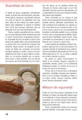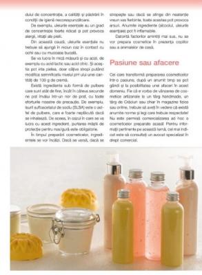 Cartea de fata este o sursa valoroasa pentru cei care sunt dispusi sa-si investeasca timpul si fantezia in crearea produselor cosmetice pentru placerea si sanatatea proprie si a celor care vor avea acces la acestea. Atat incepatorii cat si cunoscatorii tehnicilor de preparare a produselor cosmetice acasa, vor gasi informatii valoroase care ii vor ajuta pe parcursul intregului proces, de la alegerea ingredientelor, pana la modul de prezentare a produsului finit. Parcurgeti-i cu interes continutul si lasati frau liber creativitatii.