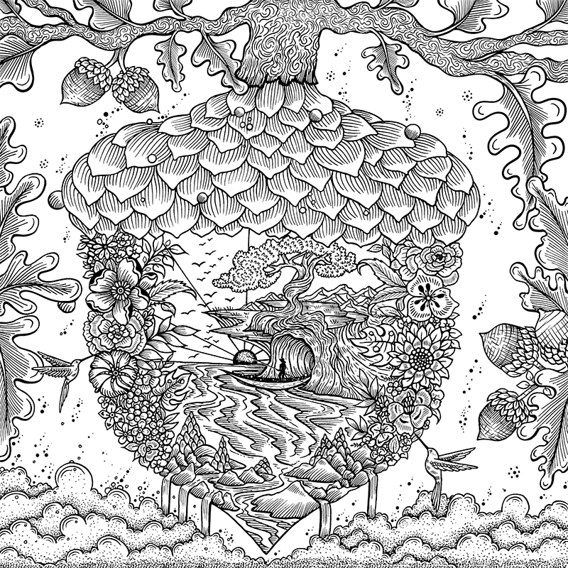 Destindeti-va si colorati aceasta colectie de ilustratii complexe si originale care prezinta diversitatea lumii. Descoperiti enigmaticul mal al raului sub un baldachin de ciuperci, capul unei femei alcatuit din flori si bufnita purtand munti inalti pe aripile sale. Imaginile combina intr-un mod magic si inventiv elemente din lumea naturala si cea fantastica. Aceste peisaje superbe asteapta sa fie aduse la viata in culori.