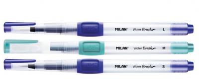 Setul de 3 pensule cu rezervor MILAN este alegerea ideala pentru pasionatii de acuarela, desen in tus sau lucrari realizate cu creioane acuarelabile. Fiecare pensula este echipata cu un rezervor reincarcabil de apa de 8 ml si dispune de un buton pentru reglarea debitului de lichid, oferind un control precis in timpul utilizarii. Capacul ermetic previne scurgerile si asigura transportul in siguranta.