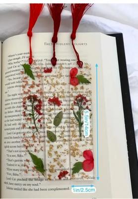 Semn de carte transparent, realizat prin tehnici de arta florala, incorporand miniaturi de flori din acril si materiale transparente. Designul inspirat din arta florala adauga un aspect delicat si elegant, fiind o piesa decorativa si functionala in acelasi timp, perfecta pentru iubitorii de natura si de frumusete subtila.