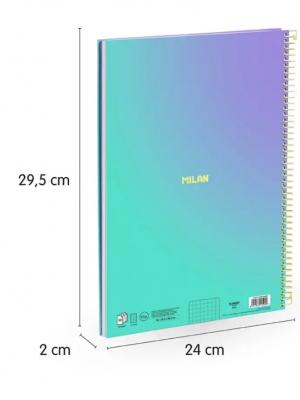 Alege caietul A4 cu spirala MILAN Sunset turcoaz pentru notite bine organizate, durabilitate in utilizare zilnica si un design atractiv, potrivit pentru elevi, studenti si profesionisti.