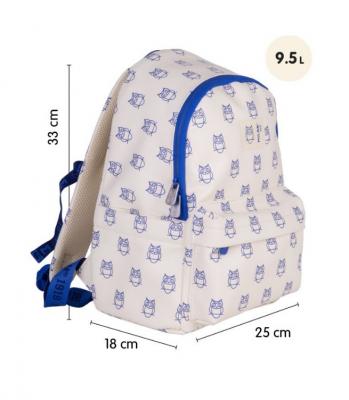 Rucsac casual de dimensiuni mini pentru copii. Culoare bej, cu model de bufnita bleumarin. Colectia 460 din 1918, inspirata din culorile si designul original al radierelor MILAN, fabricate in Spania din 1918. Compartiment principal si frontal cu inchidere cu fermoar. Doua buzunare laterale pentru sticle sau obiecte mici. Bretele de umar reglabile si bretele reglabile in fata in culoarea albastru stralucitor. Captuseala interioara cu model albastru. Compozitia tesaturii: tesatura exterioara din poliuretan si captuseala interioara din poliester. Dimensiuni: 33 x 25 x 18 cm. Capacitate: 9,5 L.