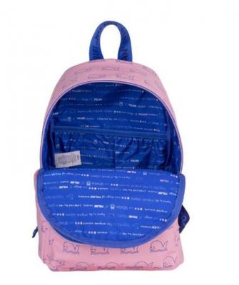 Rucsac casual de dimensiuni mini pentru copii. Culoare roz, cu model de balena bleumarin. Colectia 460 din 1918, inspirata din culorile si designul original al radierelor MILAN, fabricate in Spania din 1918. Compartiment principal si frontal cu inchidere cu fermoar. Doua buzunare laterale pentru sticle sau obiecte mici. Bretele de umar reglabile si bretele reglabile in fata in culoarea albastru stralucitor. Captuseala interioara cu model albastru. Compozitia tesaturii: tesatura exterioara din poliuretan si captuseala interioara din poliester. Dimensiuni: 33 x 25 x 18 cm. Capacitate: 9,5 L.