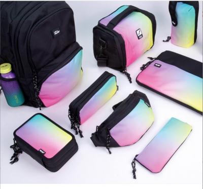 Design stilat si modern: culoarea neagra cu o combinatie de degradeuri inspirate de apusul de soare si detalii alb-negru, transforma acest ghiozdan intr-un accesoriu trendy si atragator.
