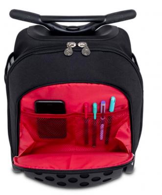 Maner ergonomic de impingere/tragere pentru a facilita impingerea ghiozdanului inainte, ca un carucior de cumparaturi (pozitie recomandata), precum si tragerea acestuia.