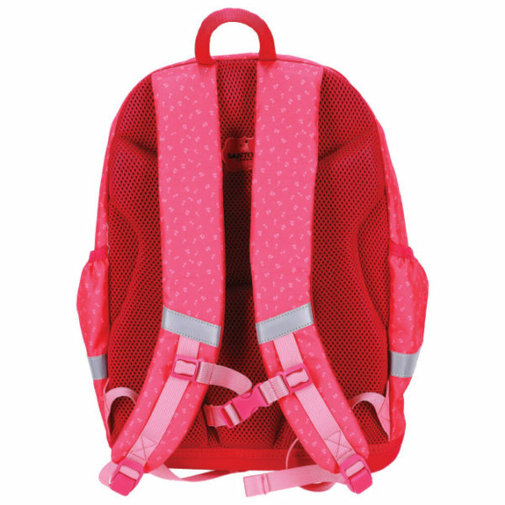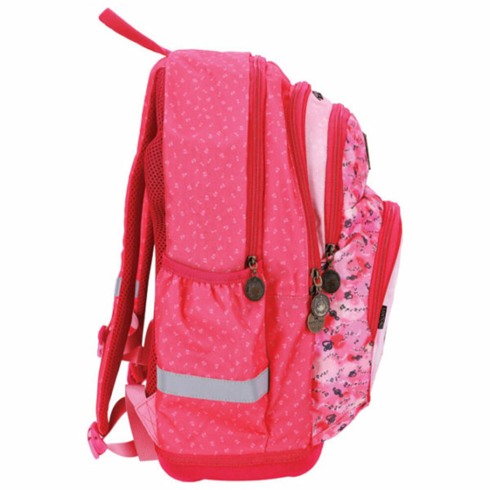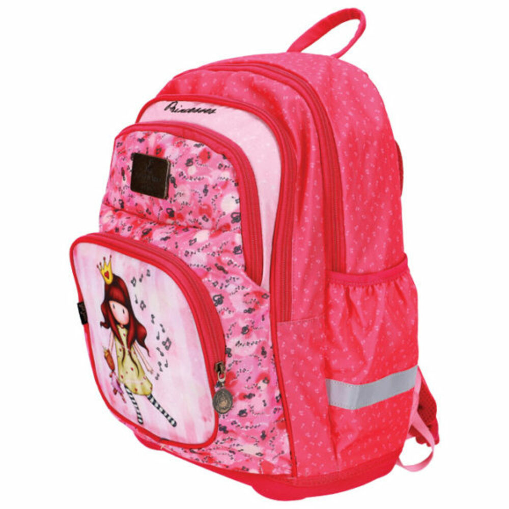 Ghiozdanul Santoro Gorjuss are 2 compartimente principale cu fermoar; buzunar mare frontal cu fermoar; buzunar mic frontal cu inchidere cu fermoar, buzunare laterale;