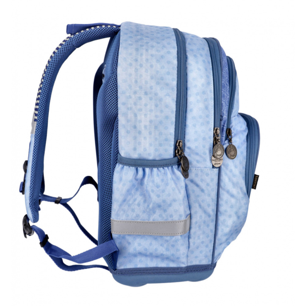 • Ghiozdanul Santoro Gorjuss are 2 compartimente principale cu fermoar; buzunar mare frontal cu fermoar; buzunar mic frontal cu inchidere cu fermoar, buzunare laterale;