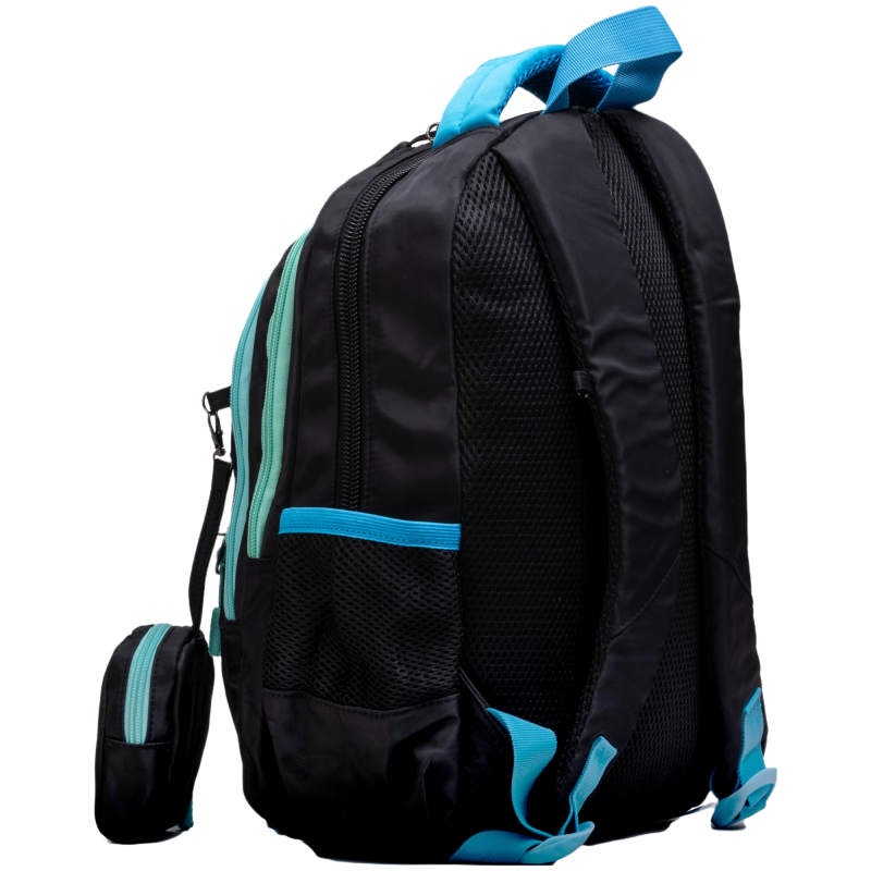 Ghiozdanul este prevazut cu patru fermoare si o borseta practica pentru a depozita obiecte mici. Baretele sunt reglabile pentru a oferi un confort maxim la purtare si sunt prevazute cu burete si plasa, pentru a preveni transpiratia.